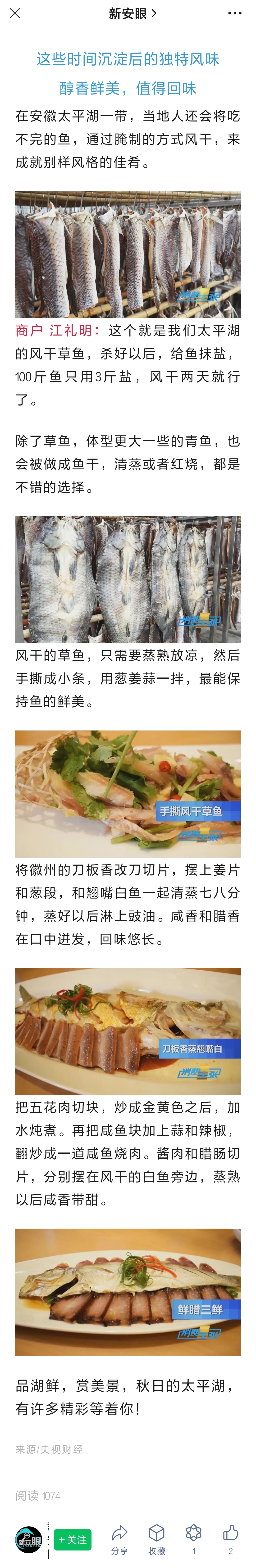 新安晚報(bào)【新安眼】微信公眾號(hào),刊發(fā)CCTV2報(bào)道太平湖湖鮮