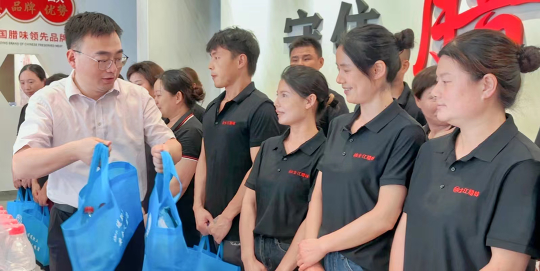 7月24日,星期三,驕陽似火,熱浪滾滾。在這熾熱的季節(jié)里,黃山區(qū)區(qū)委及總工會如同一股清涼的溪流,為全江臘味的員工們帶來貼心的關(guān)懷與清涼。